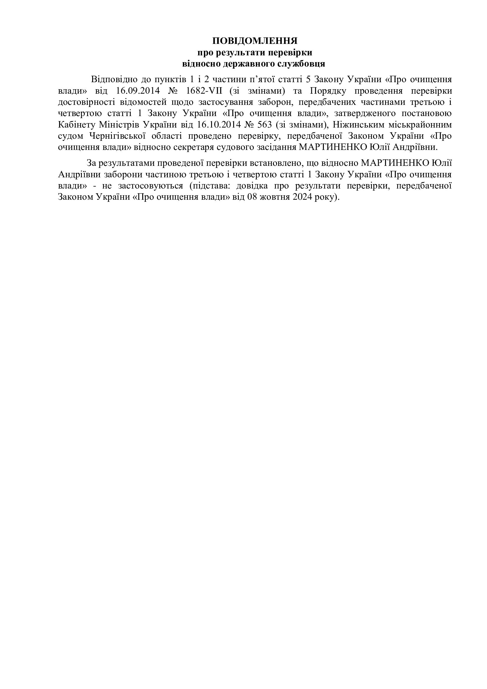 Повідомлення про результати перевірки відносно Мартиненко Ю.А.
