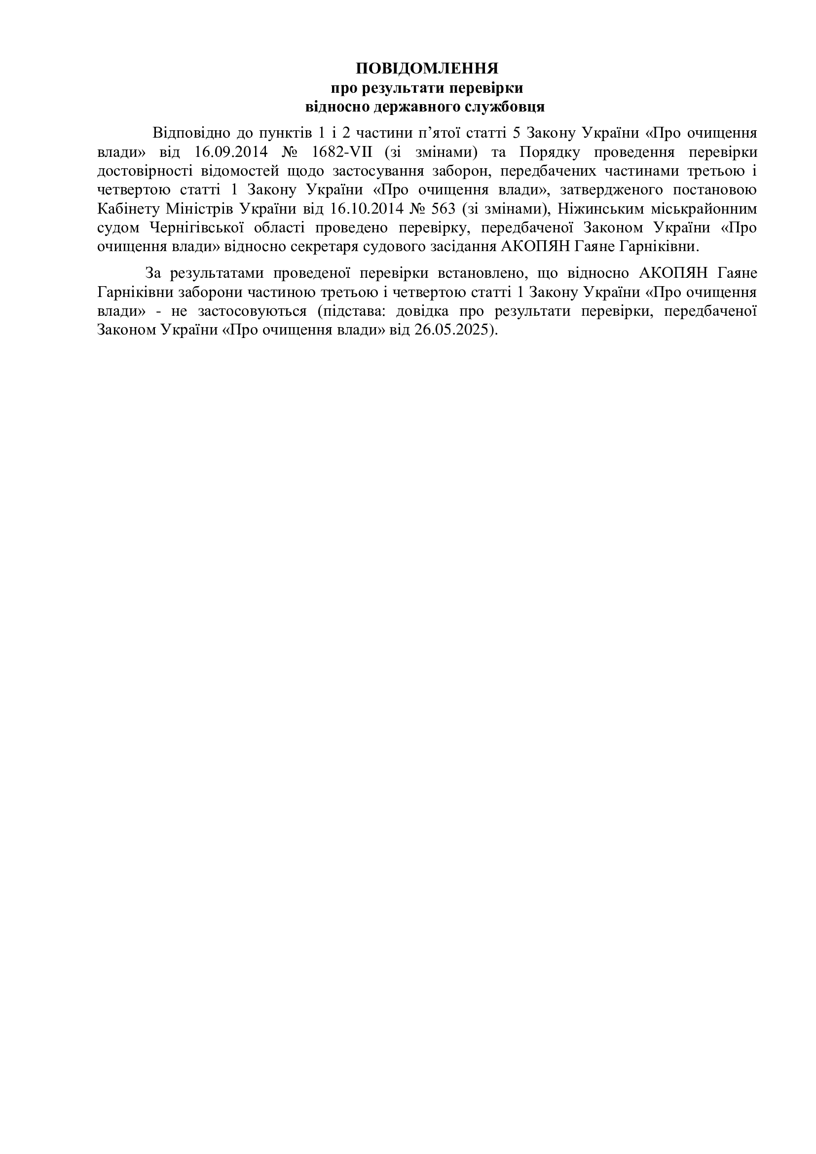 Повідомлення про результати перевірки відносно Акопян Г.Г.