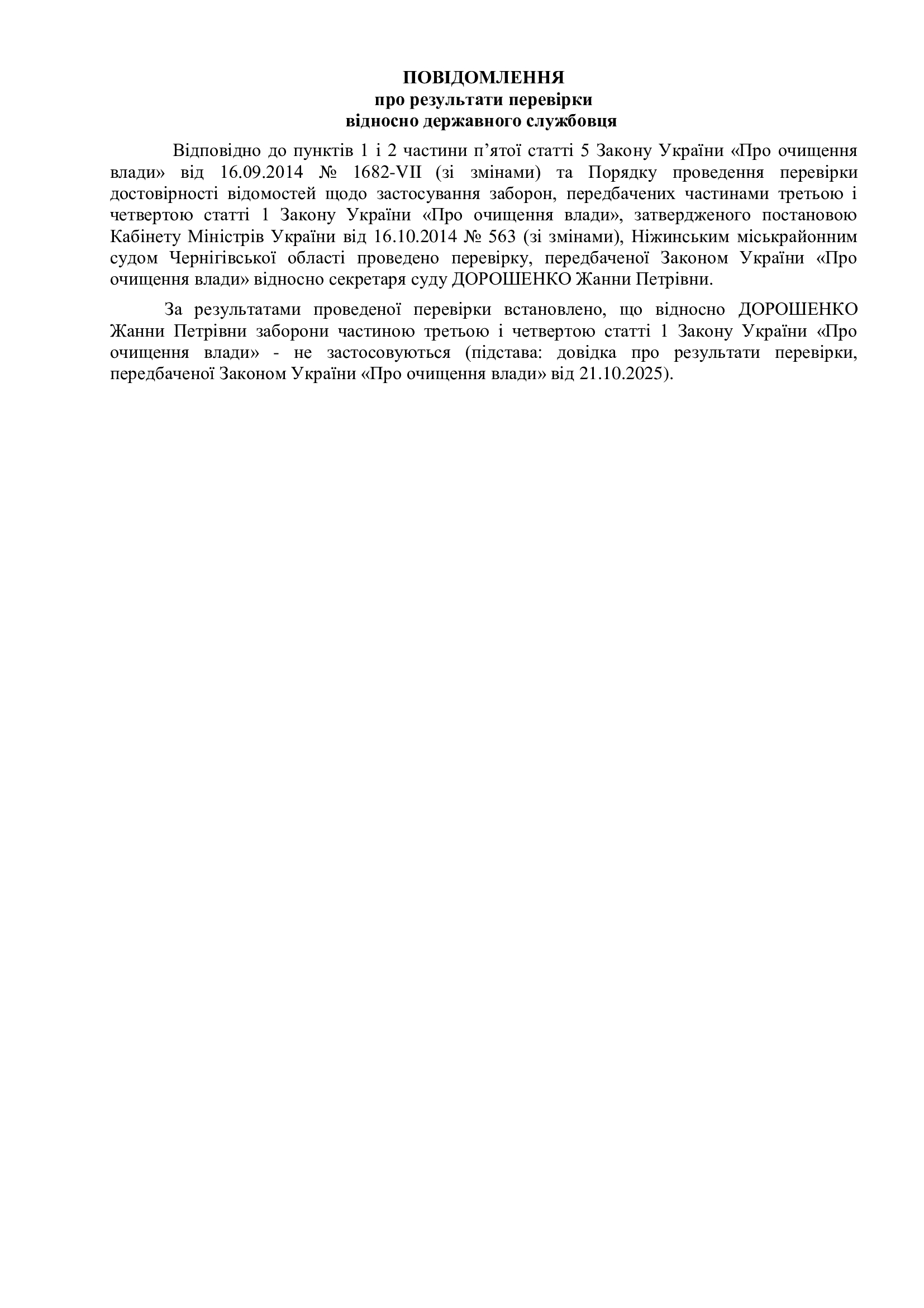 Повідомлення про результати перевірки відносно Дорошенко Ж.П.